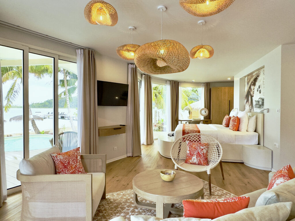Vous profiterez d’un hébergement somptueux, au design travaillé et spécialement conçu pour le climat polynésien.